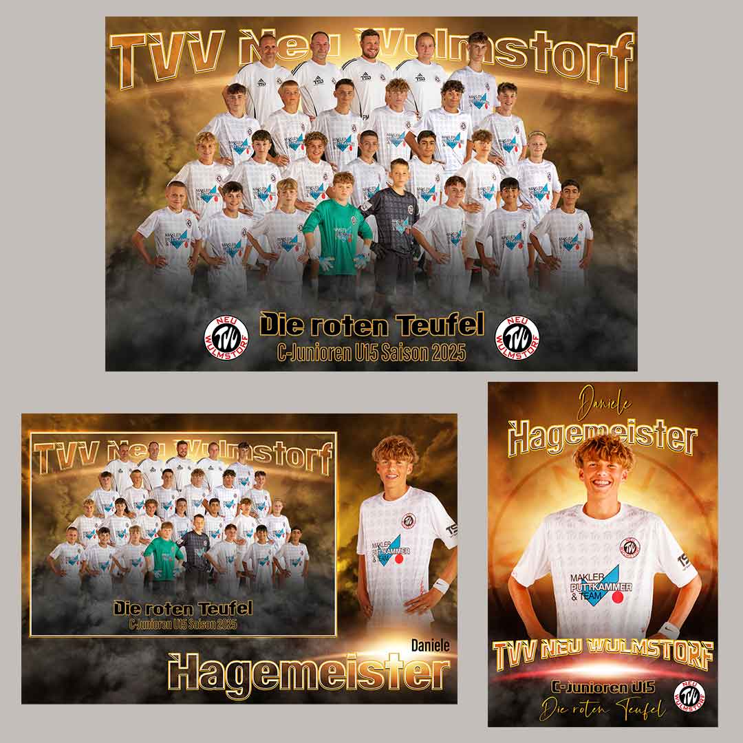 Wir fotografieren euch einzeln – perfekt für das ausdrucksstarke Portraitfoto, Mannschaftscollage und das Portrait-Memory-Mate.