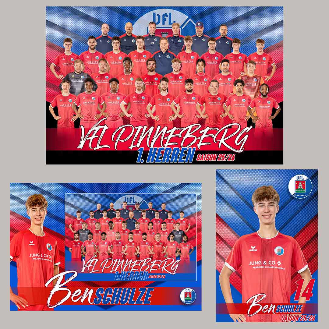 Außergewöhnliche Bilder und einzigartige Teamvorlagen. Wir kreieren individuelle Portraitfotos und integrieren diese in dynamische Teamvorlagen, die perfekt in Szene gesetzt sind – für alle Sportarten und Gruppen. Mit kreativen Designs und einer Leidenschaft für den Sport schaffen wir unvergessliche Erinnerungen, die den Teamgeist und die Emotionen einfangen. So entstehen Bilder, die nicht nur den Moment, sondern auch die starke Verbindung im Team widerspiegeln.